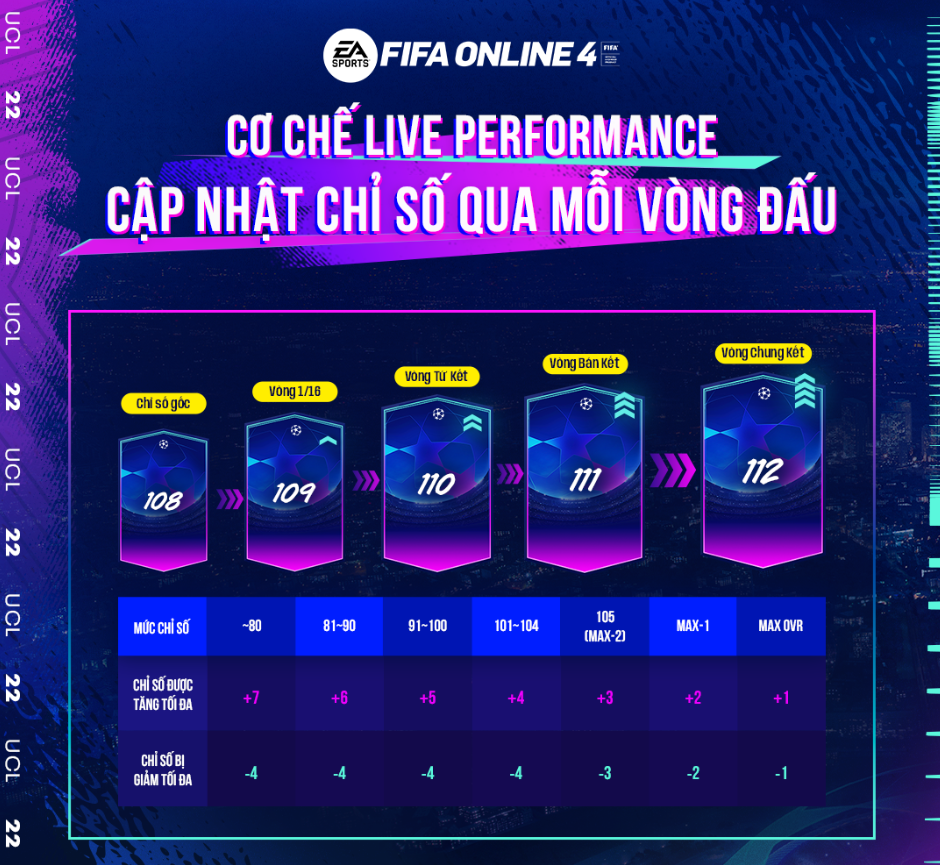 Đầut iên chúng ta sẽ xem lại quy định tăng giảm chỉ số của mùa giải 22UCL được Nexon công bố