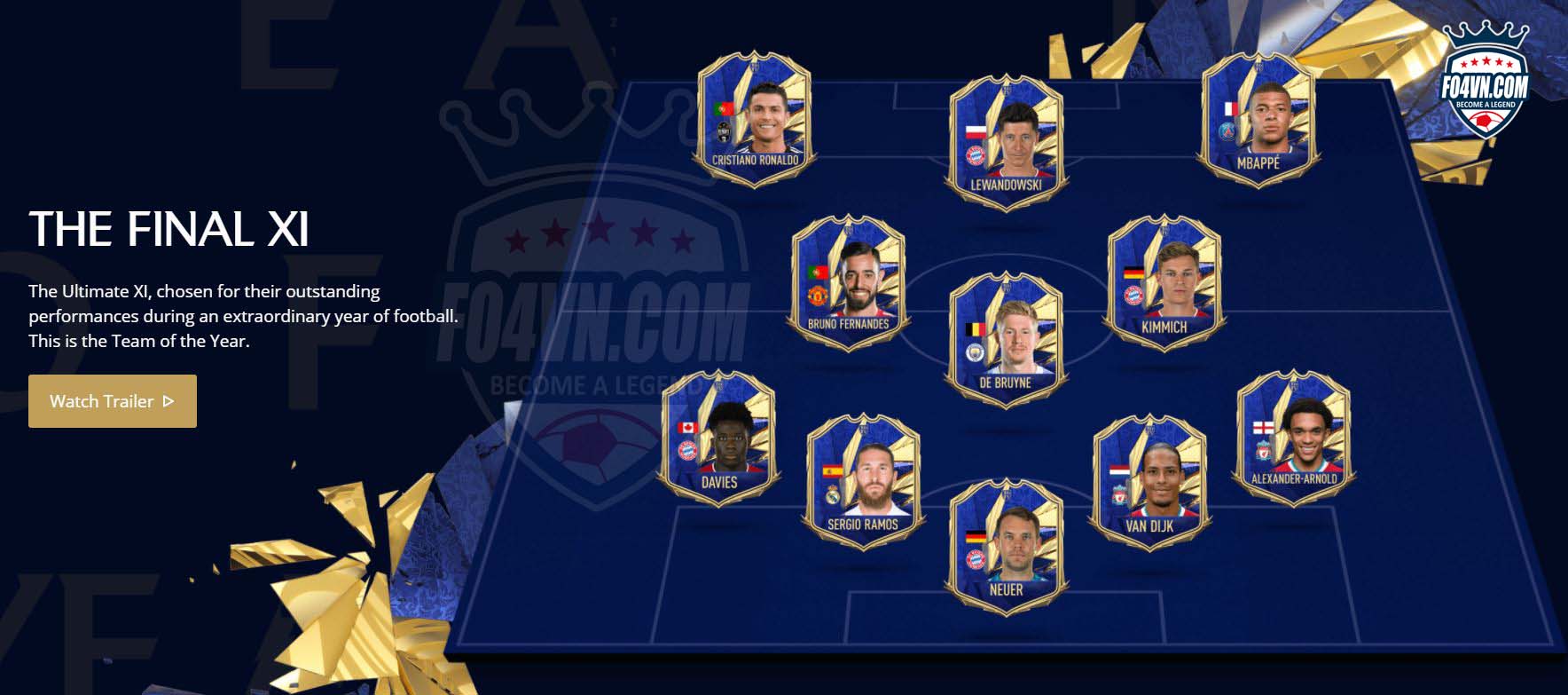 Hôm nay trên trang chủ của FIFA 21. Nhà phát triển EA đã công bố danh sách 11 cái tên do người chơi bình chọn trong danh sách các cầu thủ của năm ( mùa giải Team of the year ). Nhìn vào danh sách này có thể thấy sự có mặt của rất nhiều những cái tên của Bayern Munich.
