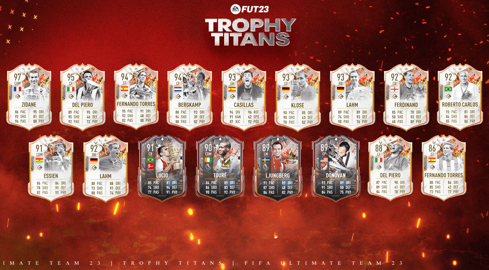 Vừa qua thì FIFA 23, tựa game truyền thống của EA và là gốc rễ của FIFA Online đã ra mắt thêm một thẻ mùa giải với tên gọi Trophy Titan. Thẻ mùa giải này nhằm tôn vinh những cầu thủ đã dành được những danh hiệu cao quý trong sự nghiệp của mình. Tuy nhiên tiêu chí để chọn lựa chưa thực sự rõ ràng, bởi có khá nhiều cầu thủ không góp mặt trong danh sách này.