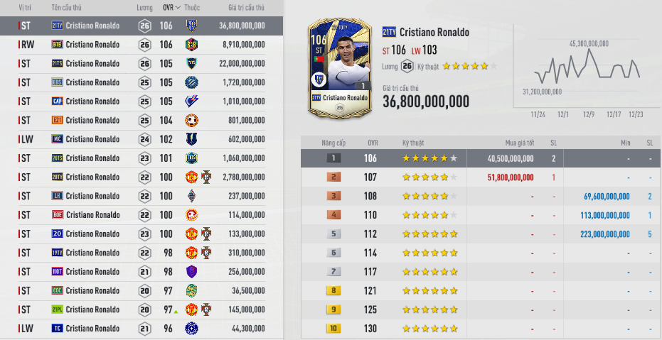 Đây là những thẻ chính, còn lại là những lần cập nhật thêm mùa NTG, ICON và thẻ huyền thoại Việt Nam
