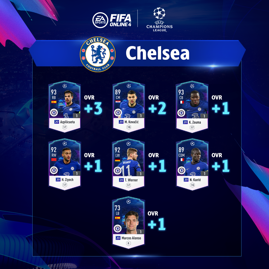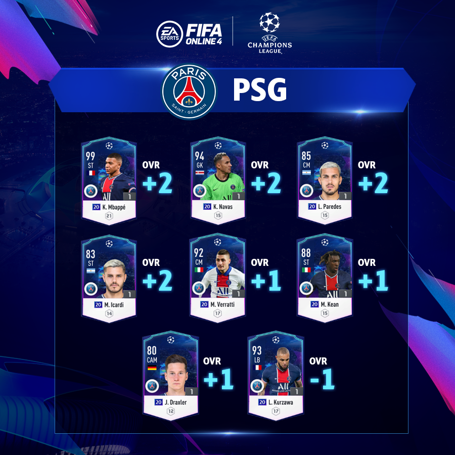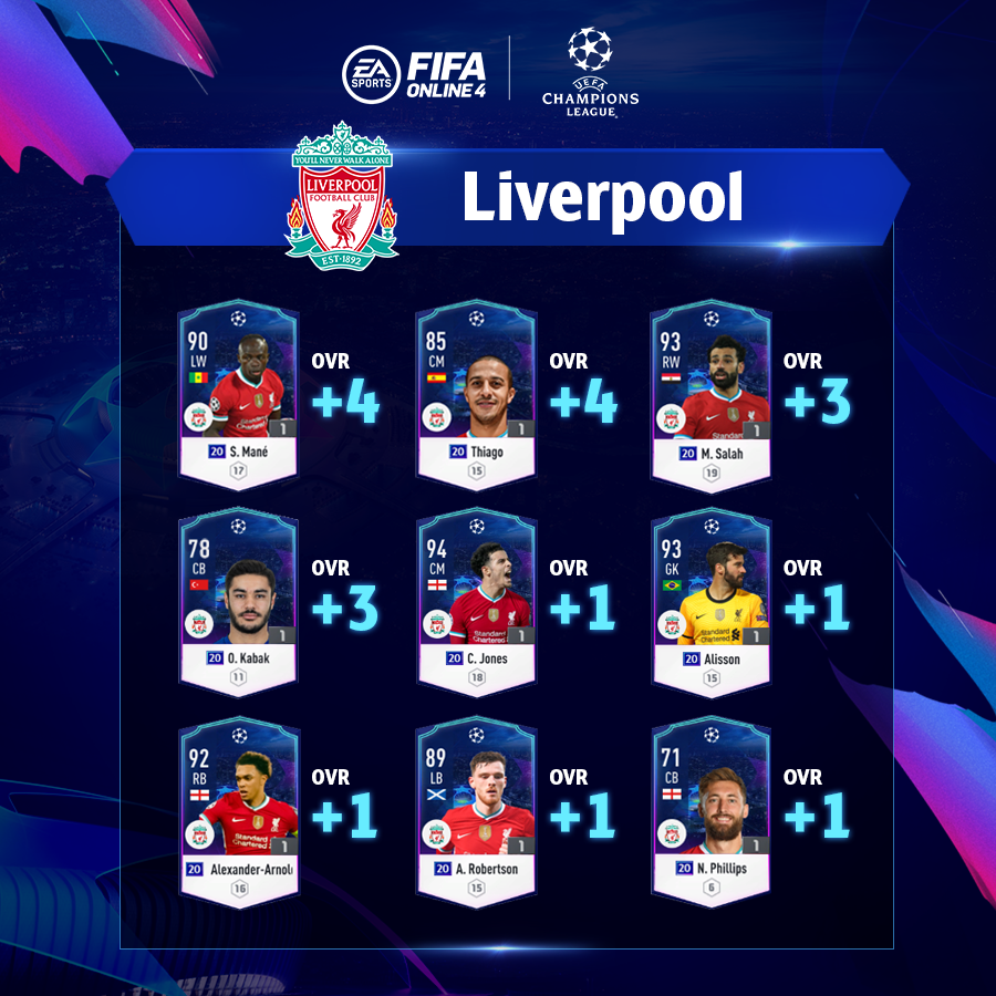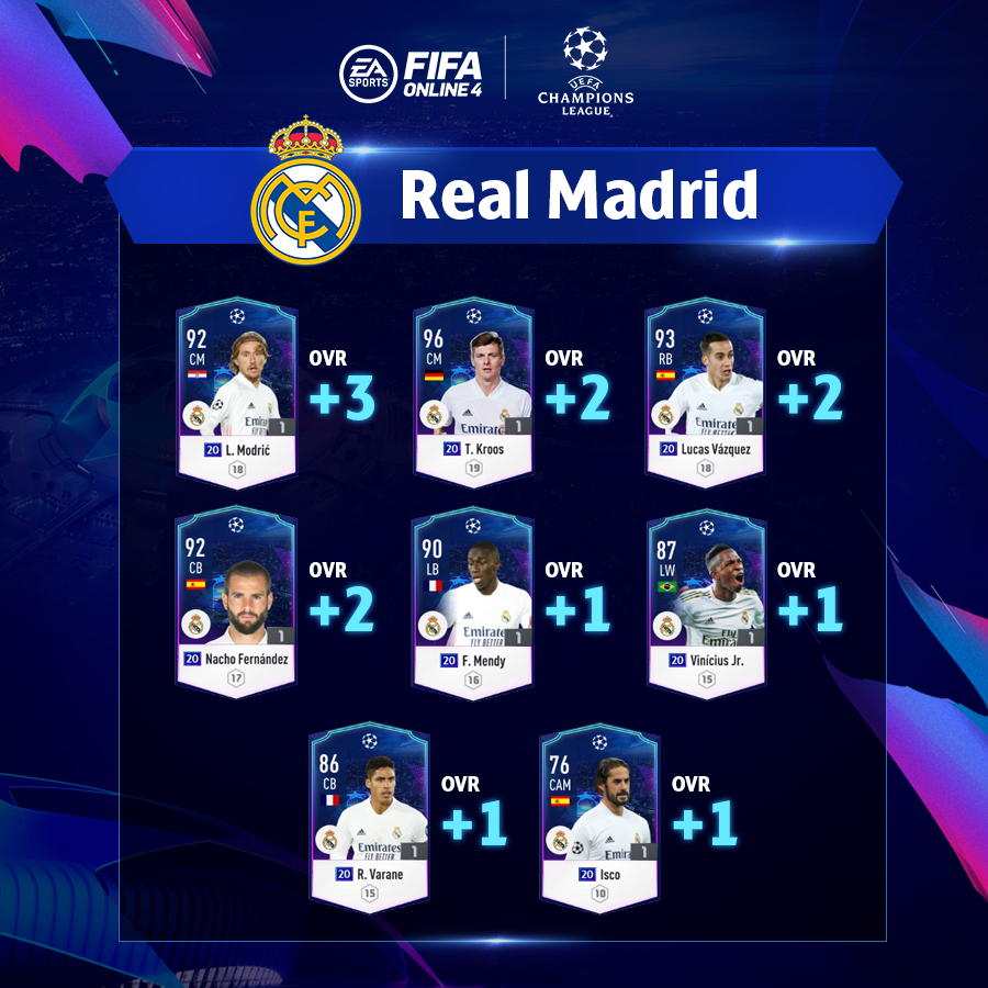 Hôm nay thì trên fanpage của Ea Sport FIFA Online 4 Thái Lan đã đăng tải những hình ảnh điều chỉnh chỉ số mùa giải 20UCL. 8 đội bóng vượt qua vòng 1/16 sẽ có những cầu thủ được tăng chỉ số. Tuy nhiên nó sẽ phụ thuộc vào Ovr ban đầu của cầu thủ đó, nếu như Ovr đã 98 99 thì chỉ được + 1 hoặc +2 chỉ số mà thôi.