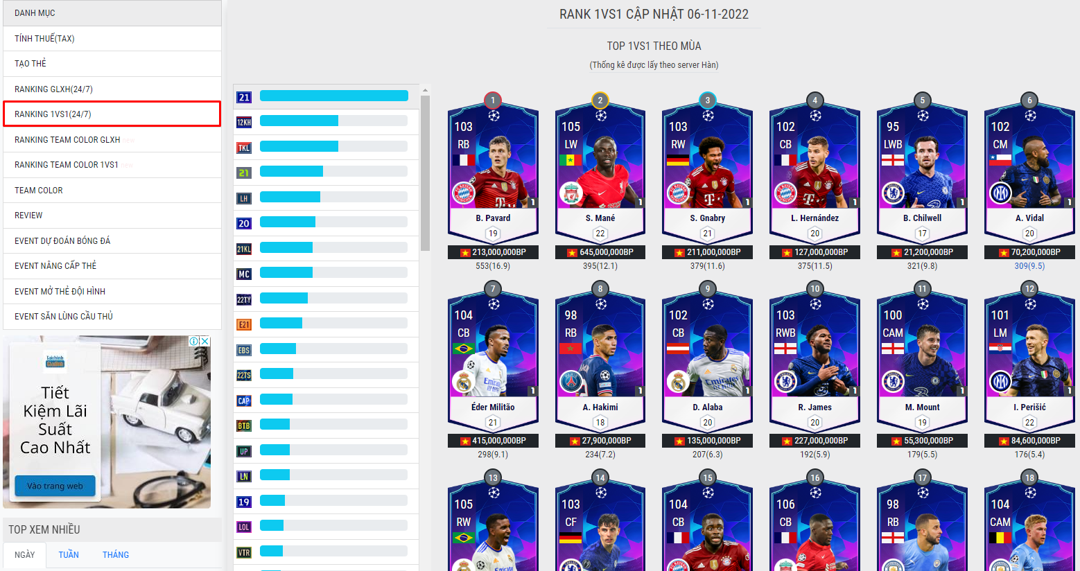 Trước đây Fo4s.com trang tra cứu chỉ số cầu thủ đã cho ra mắt tính năng xem Xoilac ở hạng mục giả lập xếp hạng với thống kê từ sever Hàn theo chuẩn Nexon. Rất nhiều bạn đã có thắc mắc tại sao lại không có thống kê của rank 1vs1.