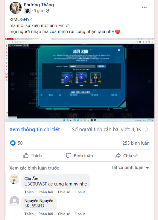 Khắp các diễn đàn, group hay thậm chí là chính các fanpage của Garena đâu đâu cũng là những dòng ký tự vô nghĩa mà người chơi post lên với hi vọng có người "code chéo" với mình, làm cho các topic bàn luận về tính năng, cầu thủ hay thậm chí là review bị spam một cách vô tội vạ. Và có vẻ như Garena thấy đó là thành công thì phải khi tiếp tục ra thêm sự kiện kích thích người chơi nhập code nữa.