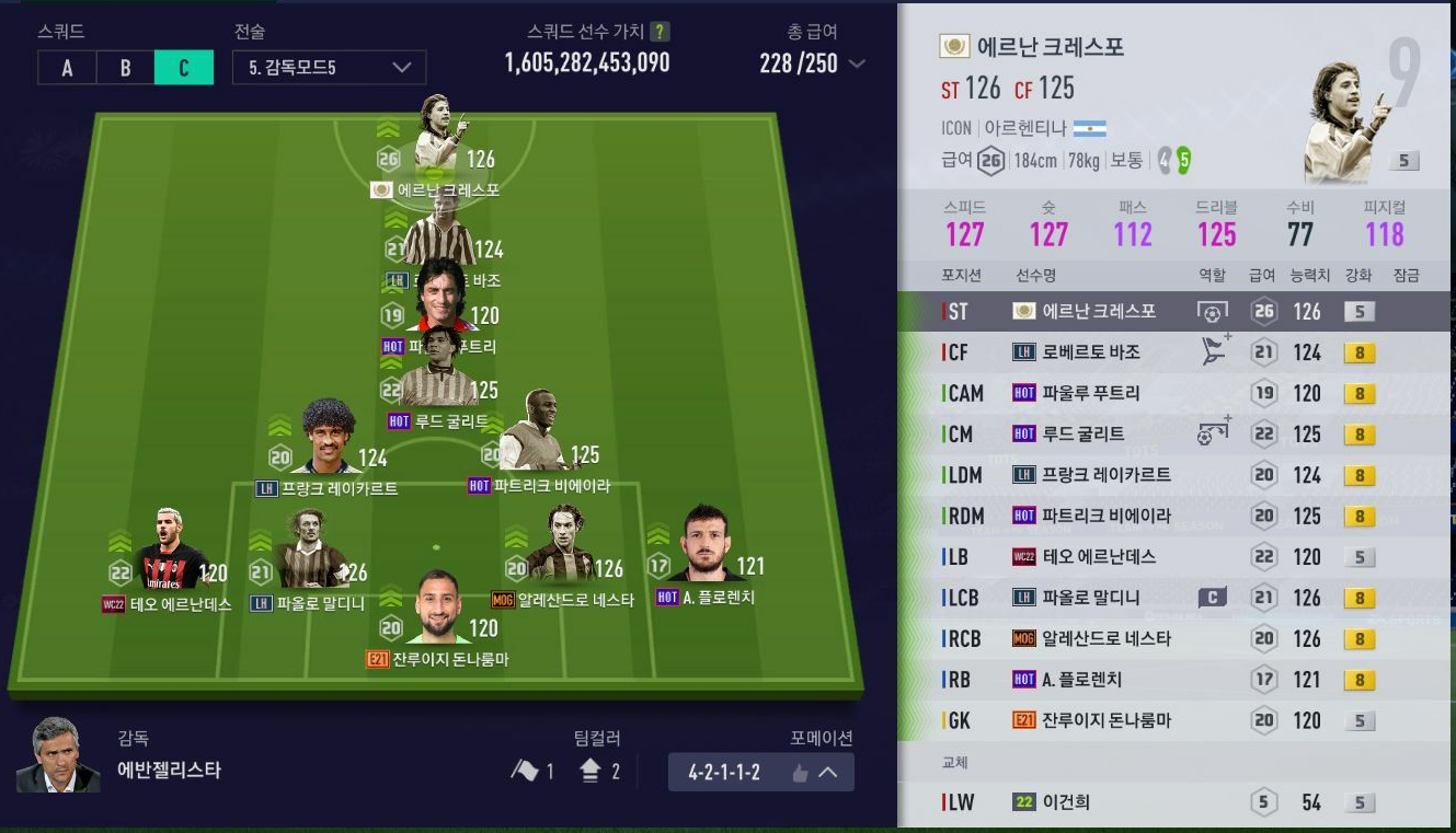 Trong đội hình của HV người Hàn này, trên hàng công có hai cái tên "khá lạ" là Futre và Baggio đều là những cầu thủ hiếm thấy trong giả lập xếp hạng.