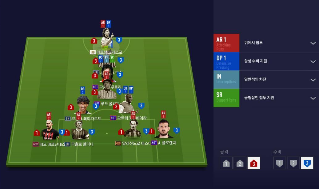 Đây là chiến thuật đơn của đội hình này, với xu hướng công thủ gần như là 3/3 với nửa già đội hình. Hàng thủ được thiết lập không dâng cao với bộ tứ vệ có lẽ mà nhiều fan hâm mộ của Ac Milan sẽ rất yêu thích.
