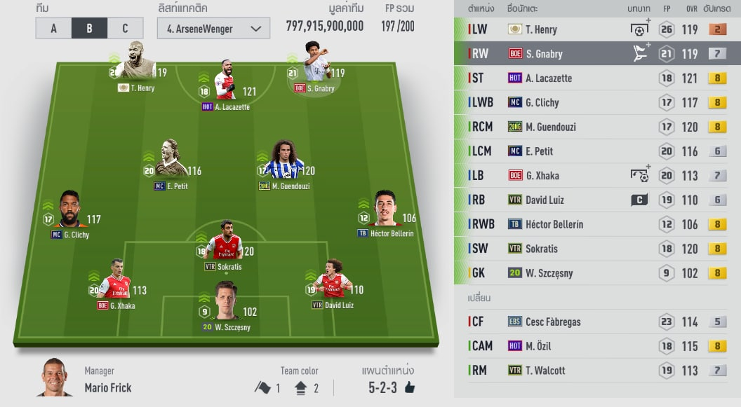 Một điều dễ nhận ra là lượng HLV sử dụng team Arsenal rất đông, nhưng chỉ trong rank 1vs1 là gặp, còn GLXH thì có vẻ như là của hiếm. Chúng ta sẽ cùng đến với một đội hình rank siêu sao sử dụng các pháo thủ của các bạn Thái Lan