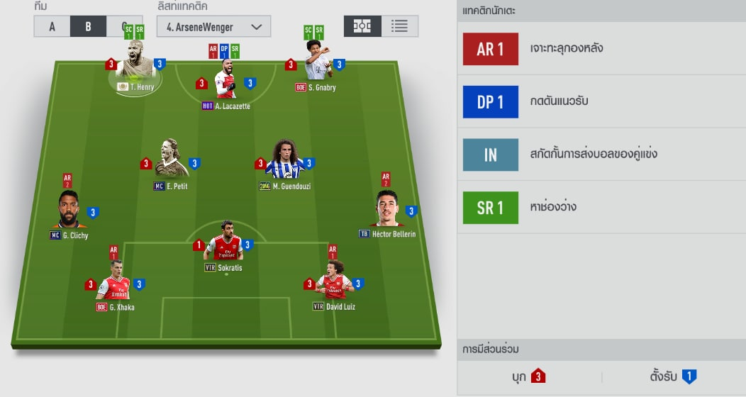 Hình ảnh chiến thuật đơn của đội hình này. Mặc dù có khá nhiều CB ngon tuy nhiên cái tên được chọn đá ở vị trí SW lại là Sokratis. Xhaka và Luiz là những cầu thủ có thiên hướng tấn công, nên vị trí được xếp của họ là khá hợp lý