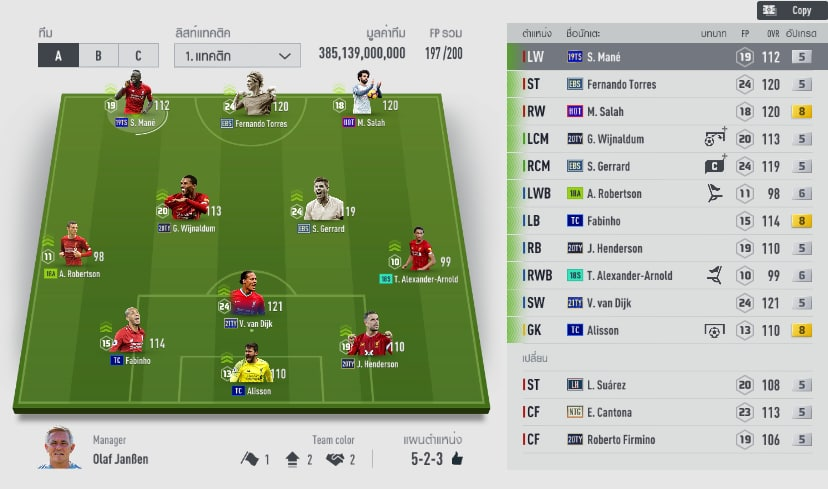 Một trong những đội bóng chơi tấn công hay nhất thế giới hiện tại là Liverpool. Tuy nhiên trong game thì Liverpool lại tương đối lép vế so với các team color khác do lượng fan không đông đảo bằng. Nhưng đừng như vậy mà coi thường sức mạnh của CLB này trong game. Ở chế độ 1vs1 đối đầu với Liverpool rất khó chịu khi các HLV chơi team đều có lối đá cống hiến và áp lực cao đúng như bản chất của CLB ngoài đời. Còn trong chế độ GLXH thì sao ? mời các bạn tham khảo 1 siêu sao bên Thái Lan sau đây
