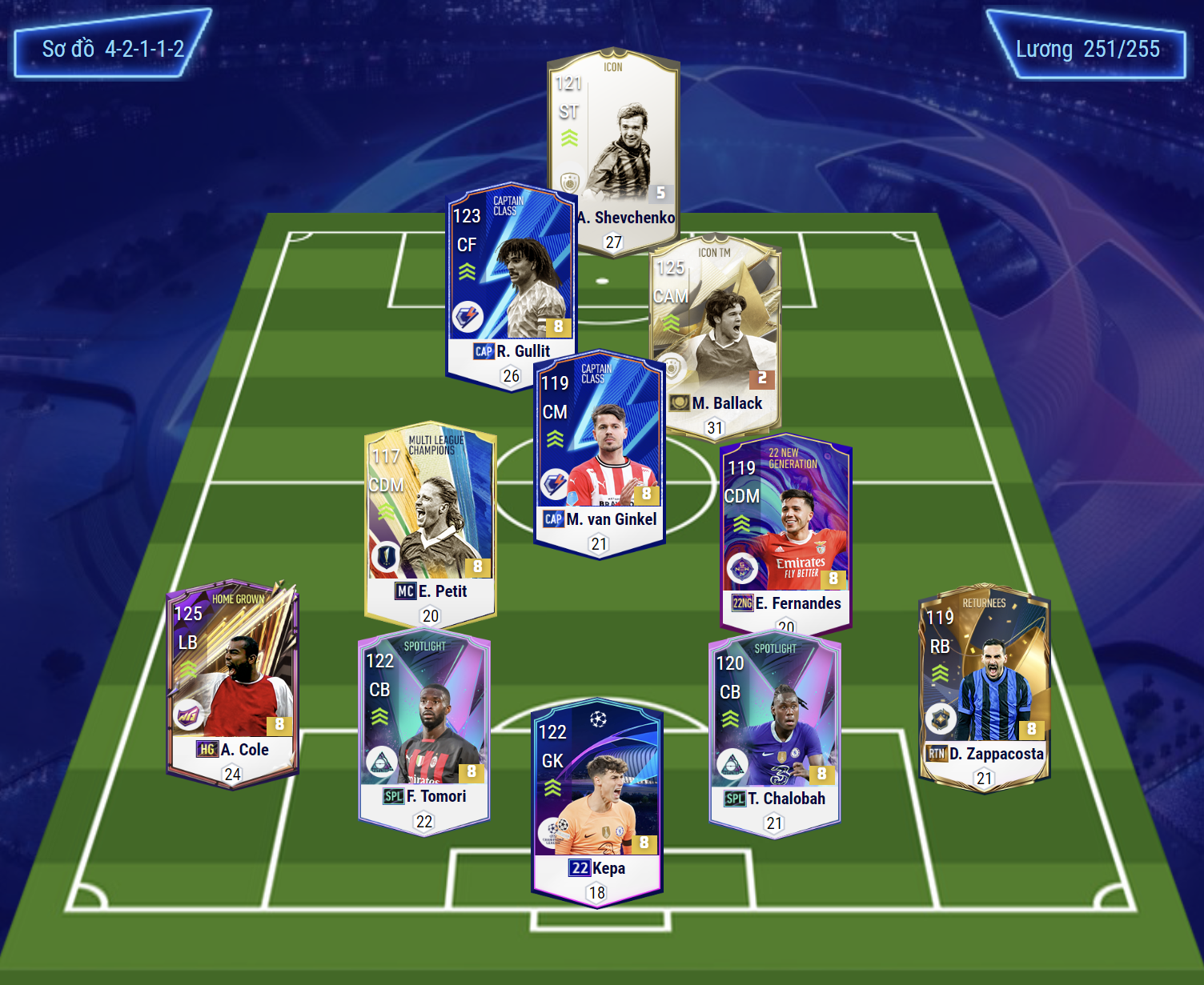 Chelsea được xem là một trong những team color hàng đầu FC Online, không chỉ có lượng fan đông đảo, đội bóng thành London còn có nhiều những cái tên quốc dân như Gullit, Shevchenko, Ballack... tạo nên một đội hình đồng đều và chất lượng.