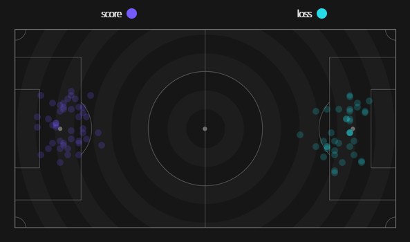 ✔ Cự ly ghi bàn trung bình là 17,8m