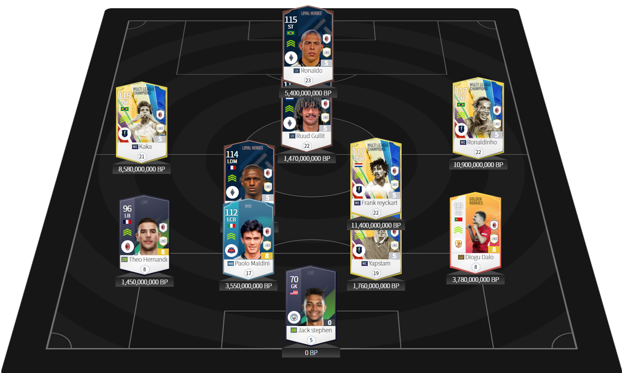 Điểm đăc biệt là HLV này không sử dụng sơ đồ 5-1-1-3 theo xu thế mà sử dụng sơ đồ 4-2-2-1-1. Điều đáng tiếc nhất là sever Việt Nam chúng ta không có J. Stam, các bạn có thể thay thế bằng Desaily MC. Đây có thể coi là một team quốc dân trong game hiện tại khi mà các vị trí đều có AI cực hay.