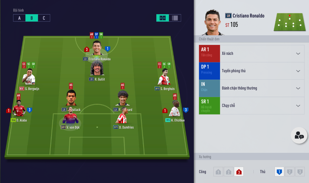Một chiến thuật đơn khá dị khi mà hai hậu vệ và tiền vệ phòng ngự để mặc định xu thế. Trong khi đó vị trí CAM được chơi tự do với thiết lập PF1