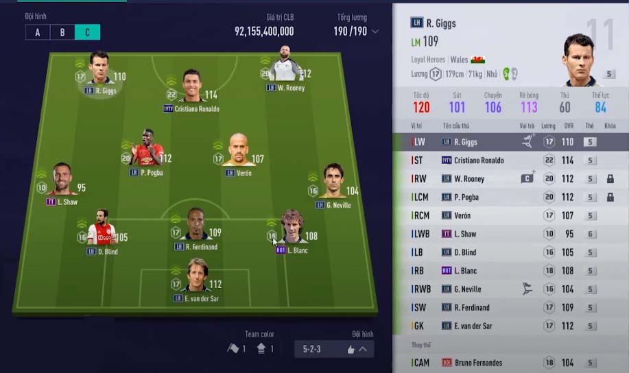 - Sơ đồ chiến thuật ( meta hiện tại đang là 5-2-3 )