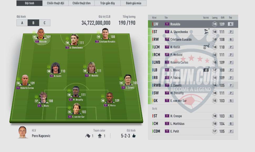 Dù không còn nhiều cầu thủ chất lượng cho việc đá 1vs1. Nhưng giả lập xếp hạng lại là chuyện khác. Sau đây là đội hình TT leo rank Thách đấu tại bảng xếp hạng Việt Nam mùa 1/2021