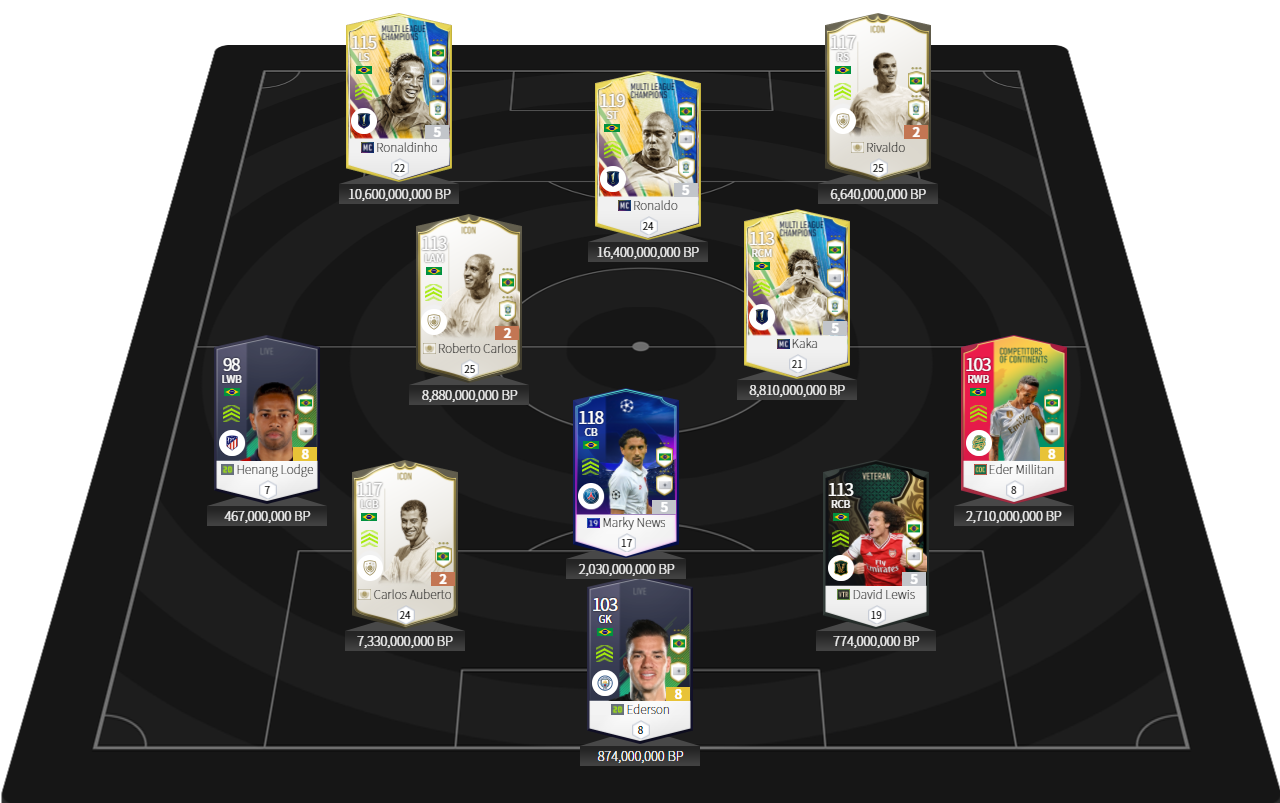 Bảng chiến thuật có vẻ về cơ bản khá giống với team LH. Tuy nhiên có đôi chút khác lạ là hai cánh của team Brazil được thiết lập không tấn công.