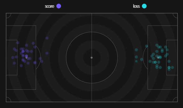 ✔ Cự ly ghi bàn trung bình 14,7m