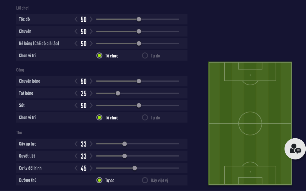 Có khá nhiều bạn sẽ băn khoăn tại sao hàng hậu vệ không cài đặt xu hướng của cầu thủ, thực ra hiện nay hậu vệ cánh đã được fix di chuyển nên không còn dâng quá cao hay bó vào trung lộ như trước đây. Nên hoàn toàn có thể không cần lo đến vấn đề đó nữa.