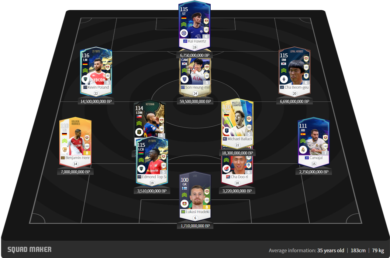 Điểm hạn chế duy nhất của Bayern Levekusen là không có cha con huyền thoại Cha Bum Kun và Cha Du Ri trong đội hình. Tuy nhiên bạn có thể hoàn toàn sử dụng những phương án tháy thế khác . Như kéo Son Hueng Min ra cánh, và thay vào đó vị trí CAM có thể đẩy Vidal lên. Và E. Can đá CDM. Vị trí trung vệ chúng ta có cái tên Toprak HOT có thể đảm nhiệm