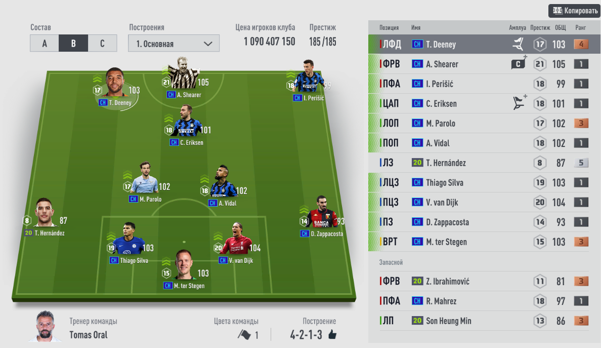 Với 10/11 cầu thủ đều là mùa giải CH ( HOT ). Điều đặc biệt là HLV này sử dụng khá nhiều cái tên lạ lẫm với các " mặt hàng" tại sever Việt Nam. Ở Nga thì Parolo là một trong những cầu thủ đá tiền vệ trung tâm được yêu thích nhất. Còn Zapacosta là hậu vệ phải được tin dùng nhiều nhất. Sever này không có mùa GR nên không có những cái tên như Hakimi hay Dalot nhé các bạn