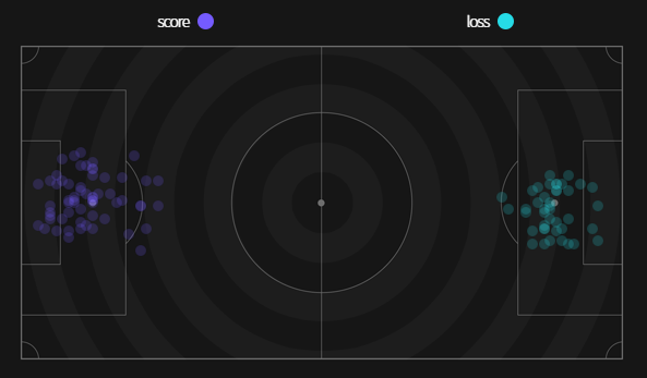 ✔ Tỷ lệ ghi bàn 2,1 bàn/trận