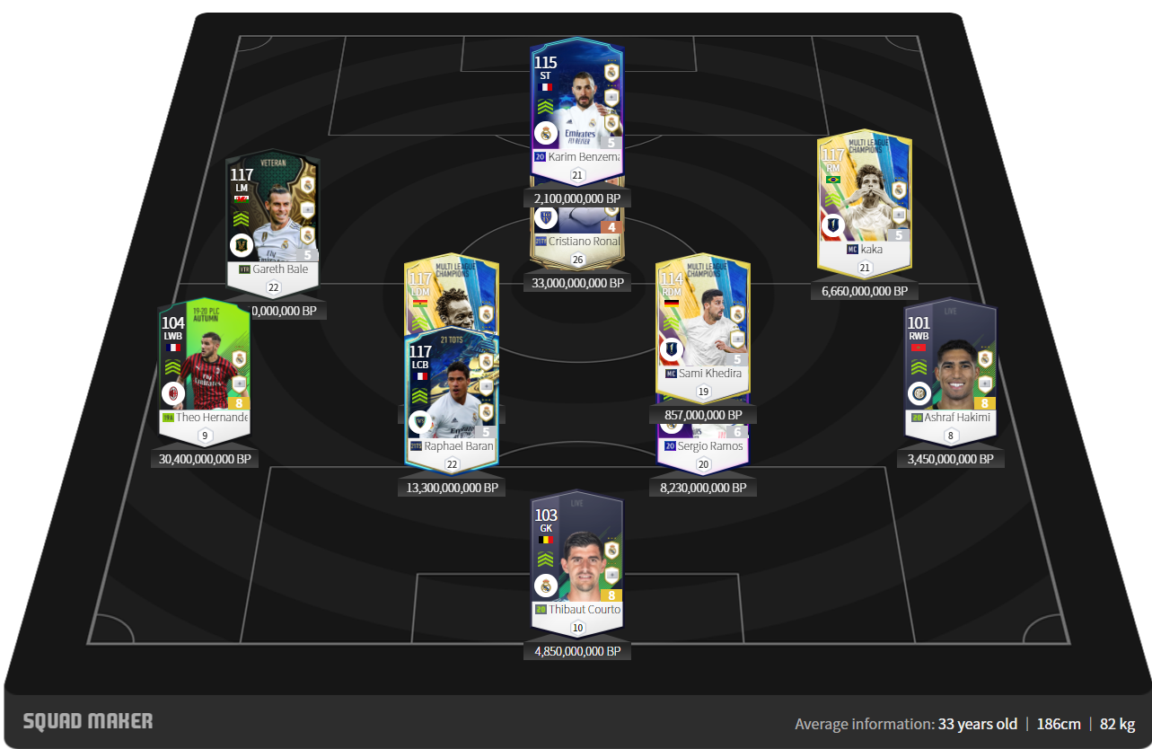 Đội hình này là khá cơ bản dành cho một team Real. Có điều cầu thủ chơi ở vị trí cao nhất không phải Ronaldo mà lại là Benzema 20UCL. Ben 20UCl cũng nằm trong top các cầu thủ có khả năng kiến tạo cao nhất game. Nên các bạn có thể hoàn toàn yên tâm về vấn đề này.