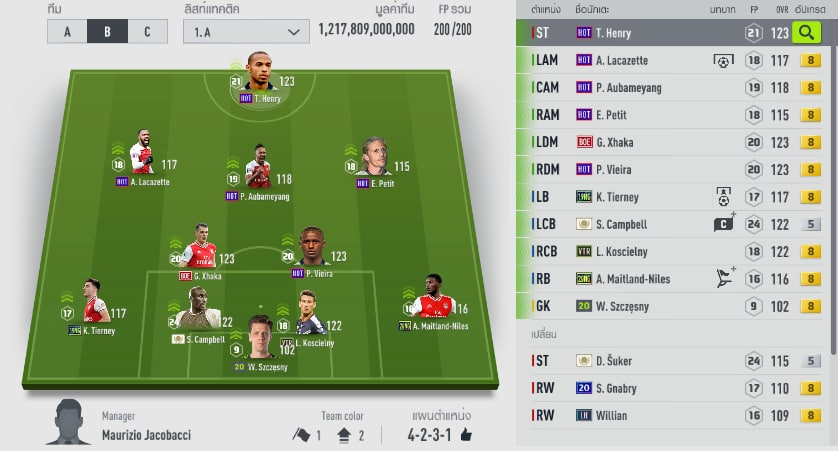 Vẫn là 4-2-3-1 tuy nhiên Auba được kéo xuống đá như một tiền vệ tấn công ở trung tâm, ngay phía sau Henry. Ngược lại thì Petit lại được kéo lệch ra cánh đá RAM. Về đội hình thì có lẽ đây là những nhân tố cực đẹp cho team color của các pháo thủ