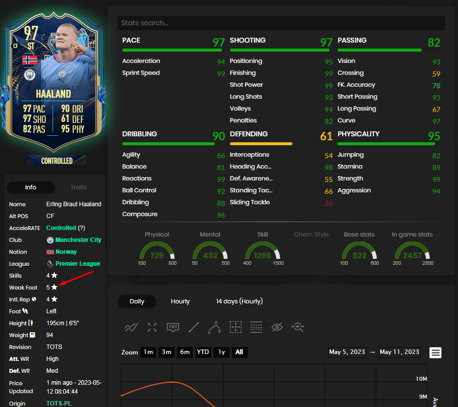 Đầu tiên chính là Haaland 23TS bên FIFA 23 có hai chân 5/5. Đây rõ ràng là một điểm mà khi vào FIFA Online 4 sẽ biến Haaland thực sự thành một cây săn bàn hàng đầu với khả năng dứt điểm và thể hình to khổng lồ hiện tại. Khá nhiều người tỏ ra bất ngờ trước việc Haaland được nâng cấp như thế này.