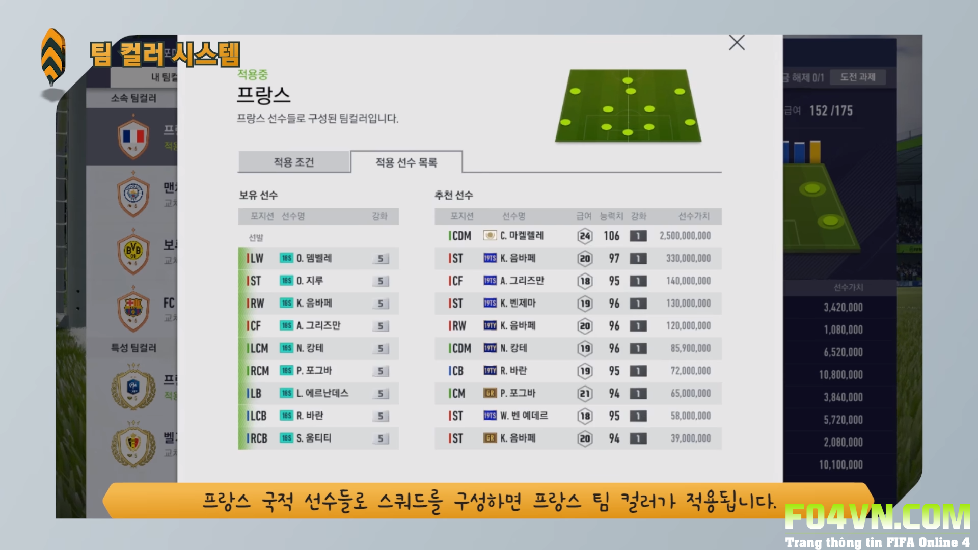 Tính năng team Color trong FIFA Online 4