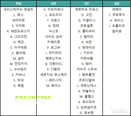 Sau quá trình đưa ra đánh giá thì số phiếu bầu cao nhất của các vị trí từ tiền đạo, tiền vệ , trung vệ đến thủ môn thì đã có những cái tên nổi bật một cách rõ ràng cho từng vị trí.