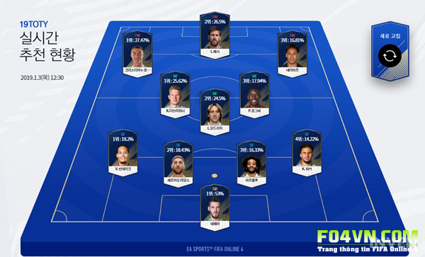 Vào ngày 3 tháng 1 nămg 2019, sự kiện giới thiệu danh sách các cầu thủ trong cuộc bầu chọn Team of the Year đã được công bố tại FIFA Online 4 Hàn Quốc. Nhiệm vụ của người chơi đó là sẽ bình chọn ra 11 cái tên trong số 55 ứng viên trong danh sách các cầu thủ xuất sắc nhất năm vừa qua.