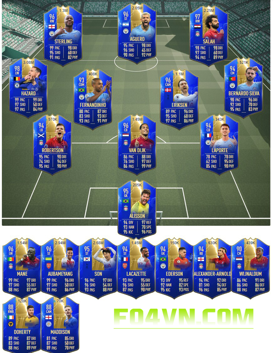 Đội hình dự kiến của Server Hàn tính đến thời điểm hiện tại Mặc dù vậy, đây mới chỉ là những hình ảnh được cộng đồng FIFA Online 4 Hàn Quốc chia sẻ. Thông tin cụ thể vẫn cần thêm thời gian để nhà phát hành Nexon công bố chính thức về mùa giải mới này.