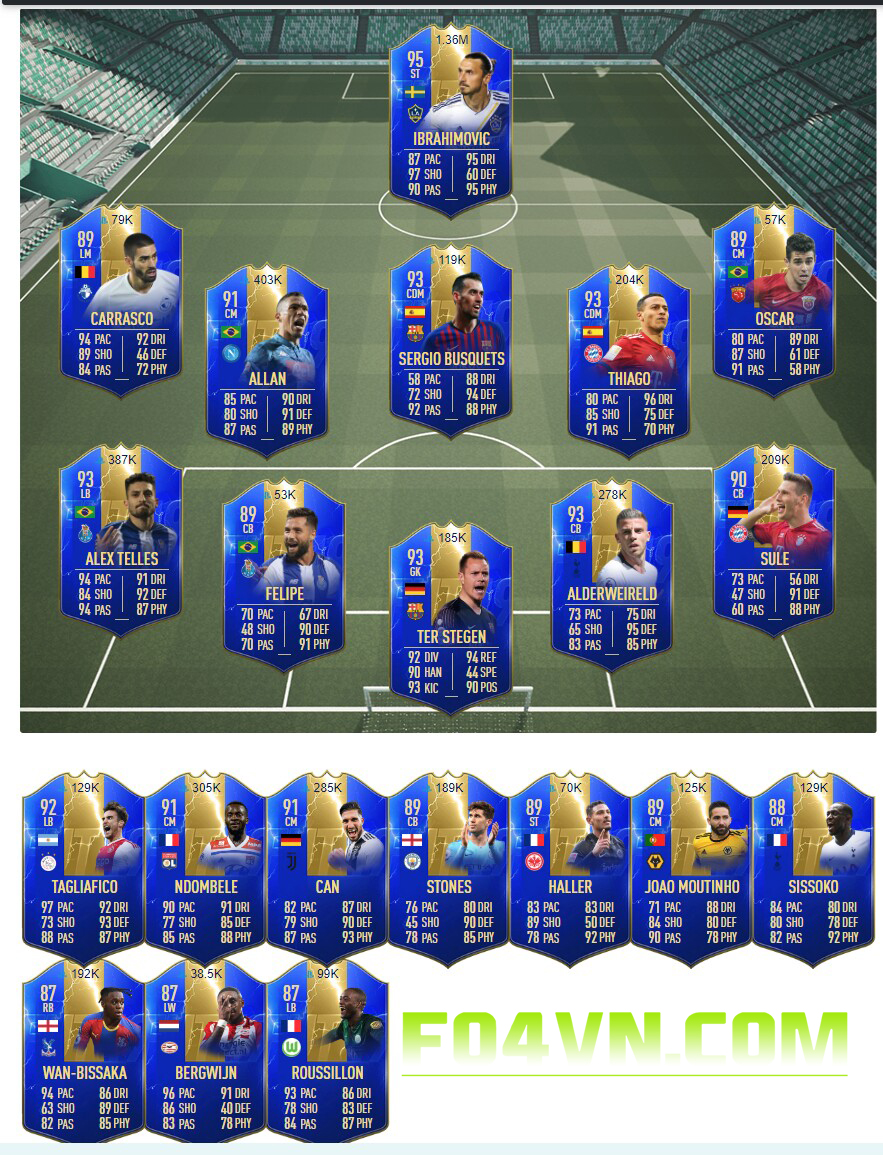 Thẻ cầu thủ TOTS (Team of the Season) là thẻ của các cầu thủ xuất sắc nhất ở 7 giải đấu lớn khác nhau trong mùa giải 2018-2019. 7 giải đấu lớn bao gồm : EPL, La liga, Serie A, Bundesliga, Ligue 1, Everdivisie và liga NOS,