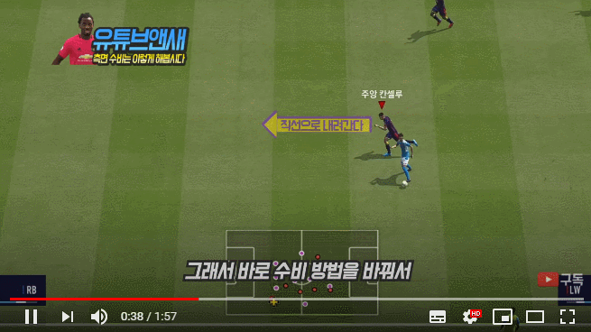 Trong trường hợp này, khi bạn đã đeo bám cầu thủ đối phương rát như hiện tại. Tuy nhiên hãy nhìn vào tính huống lúc này, bạn đang chạy phía sau lưng đối phương. Việc bạn có thể áp sát và cướp bóng gần như là rất khó. Hãy lập tức chuyển hướng sang phòng ngự kiểu khác.