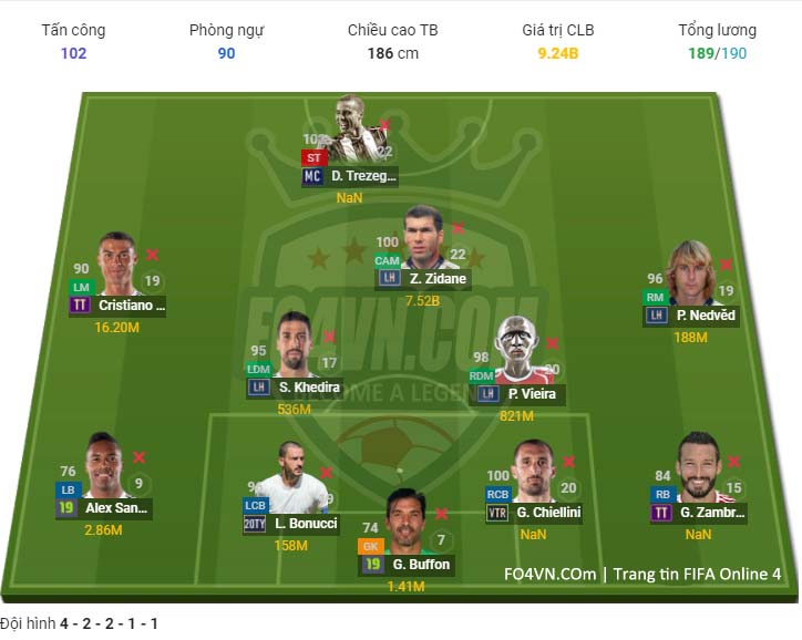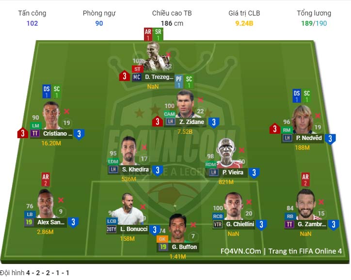 * Tiền đạo : Mặc dù có những cái tên như Inzaghi, Cr7. Nhưng có lẽ xét vào huyền thoại của Juve thì Trezeguet là cái tên không thể thay thế. Ở ngoài đời anh đã thể hiện tình yêu tuyệt vời với clb. còn trong game, mẫu trung phong như anh là điều hợp lý cho 4231