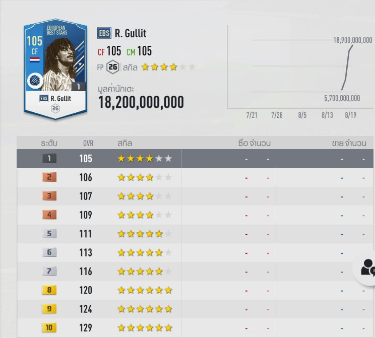 Tình trạng khan hàng chỉ diễn ra duy nhất với Gullit, nên dự đoán là giá của huyền thoại này sẽ vẫn tiếp tục tăng