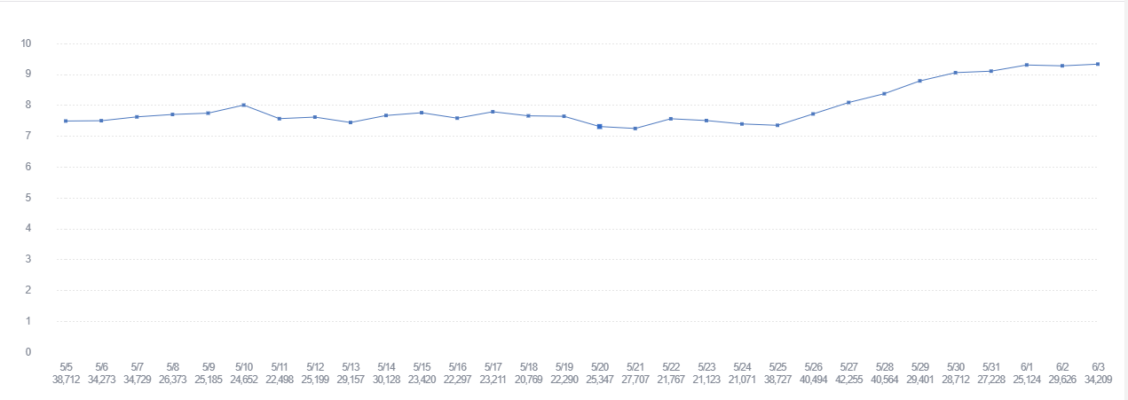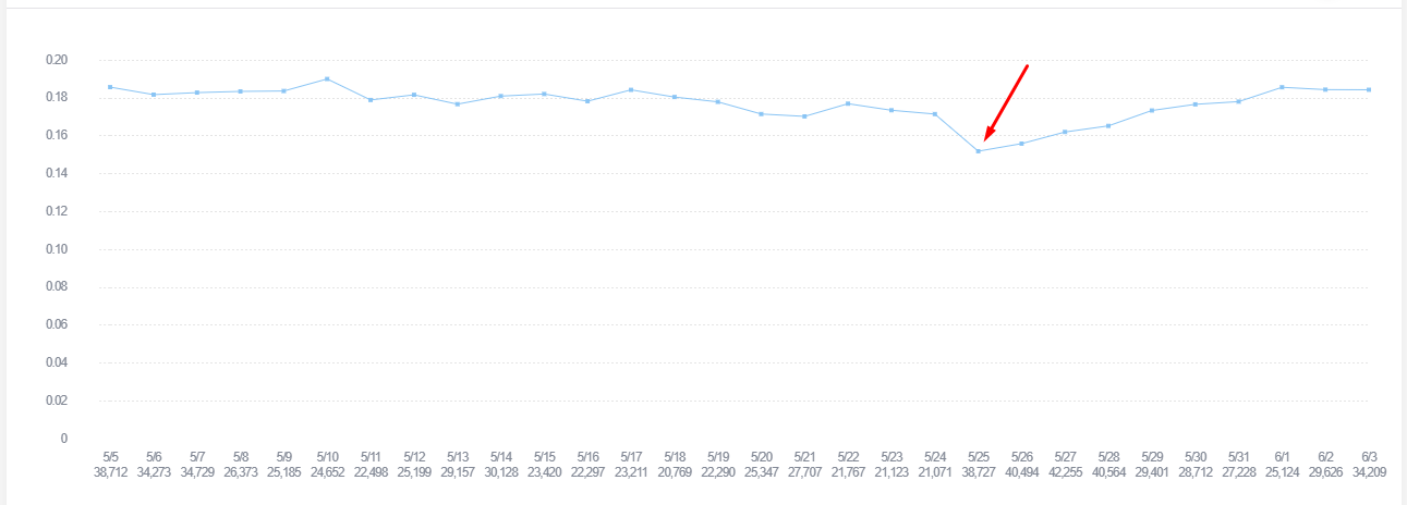 Vị trí mũi tên đỏ chỉ vào là thời điểm cập nhật gameplay, tỷ lệ các bàn thắng bằng đầu bắt đầu tăng dần khi mà các HLV phát hiện ra là đánh đầu đang dễ ăn hơn là sút bằng chân. Nhưng hãy nhìn lại đồ thị của tầm 1 tháng trước thì tỷ lệ ghi bàn bằng đầu sau update hầu như không thay đổi so với trước đây.