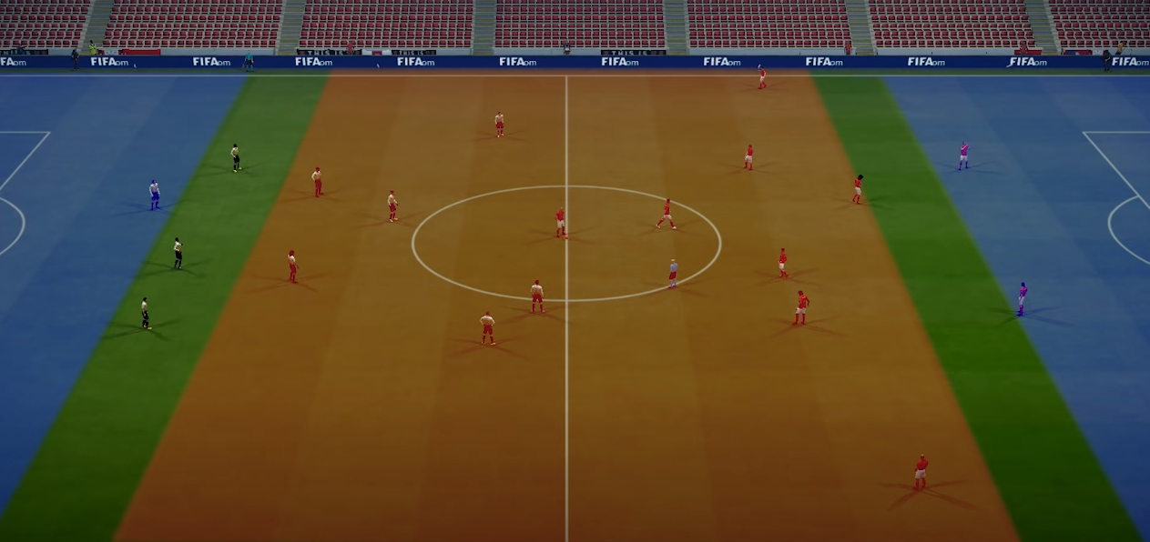 Khu vực màu đỏ chính là nơi skill này sẽ được kích hoạt, nếu bạn thực hiện một đường chuyền vượt tuyến lên phía trên, cụ thể là khu vực màu xanh lam.