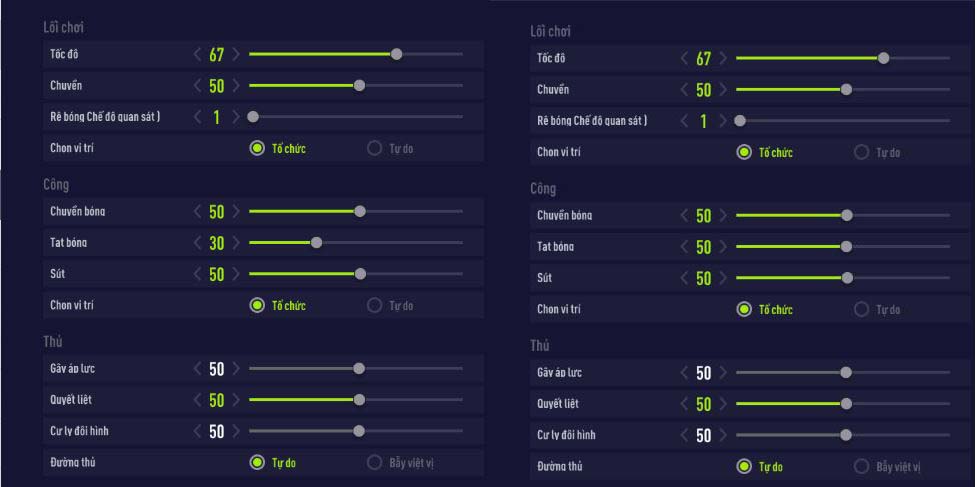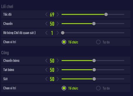 Các bạn sẽ để ý một chút vào việc chỉnh tạt bóng trong bảng "Công" của chiến thuật đội