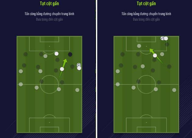 Đây là hai chiến thuật đơn cho cuộc thử nghiệm này. Bên trái là tạt bóng 30 ( tạt cọc gần ) và bên phải là tạt kết hợp ( tạt 50 )