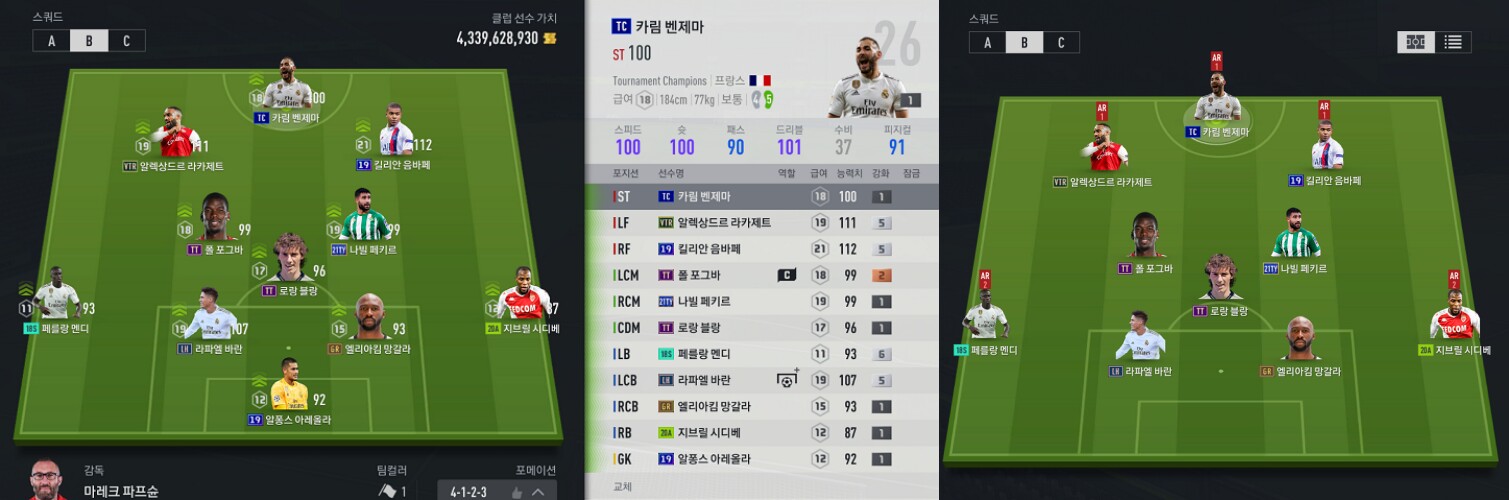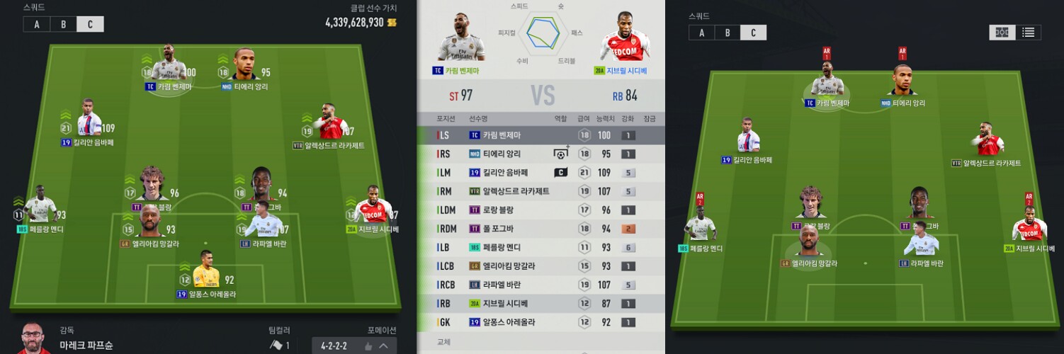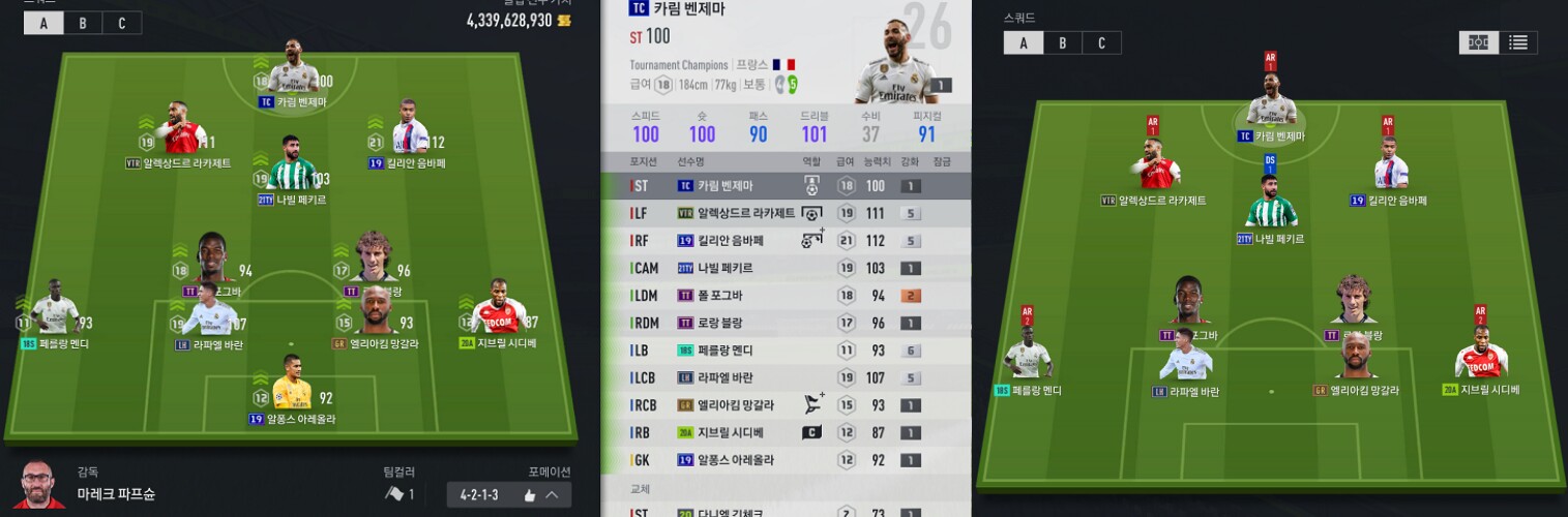 Có thể dễ dàng nhận ra khi cầu thủ đội xanh có bóng, 2 tiền đạo là Benzema và Henry không hề lùi về, mà cắm chốt ở trên để nhận bóng.