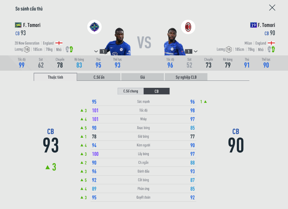 Tài năng trẻ người Anh Tomori đang là một cái tên khá hot trên TTCN khi mà anh được rất nhiều hlv tin dùng. Tất nhiên ở mức thẻ + 1 thì giá của anh là tương đối rẻ khi nguồn thẻ dồi dào, cùng với chỉ số khá thấp.