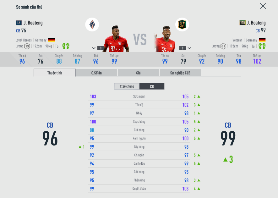 Đây cũng là điểm có sự khác biệt giữa hai mùa giải. Boateng mùa giải LH có xu hướng lao lên đánh chặn nhiều hơn so với mùa VTR. Điều này về cơ bản không có gì lo lắng, trước đây các HLV thường sử dụng cặp đôi Boateng LH và Varane LH. Tuy nhiên sắp tới đây khi gameplay 6.0 có những sự thay đổi về mặt xuyên phá của các tiền đạo. VTR đang được lựa chọn nhiều hơn, như một sự đón đầu xu thế.