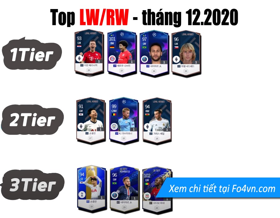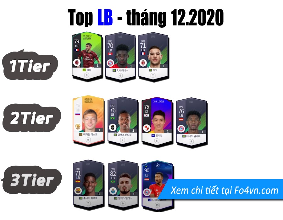 FO4VN xin được giới thiệu đến các bạn danh sách những sự lựa chọn tốt nhất cho từng vị trí, được chia làm 3 cấp độ. Tất nhiên đây chỉ là sự đánh giá mang tính tương đối tại sever Hàn Quốc. Dù giữa sever Việt và Hàn có lối chơi khác nhau, nhưng hi vọng đây sẽ là một tư liệu cho các bạn tham khảo và lựa chọn cầu thủ.