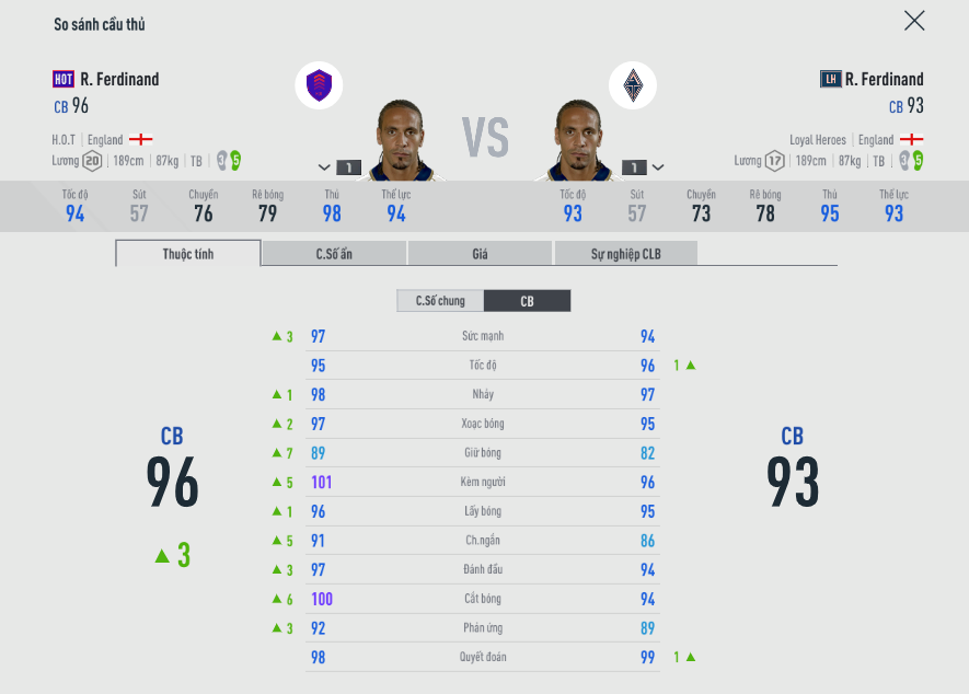 Hiện trong game có hai mùa giải của Ferdinand được chú ý nhất, bên cạnh mùa giải ICON. Nhưng xét về mặt chỉ số và mức lương thì hai mùa HOT và LH đang gây ra phân vân rất lớn cho các HLV yêu thích lá chắn thép này.