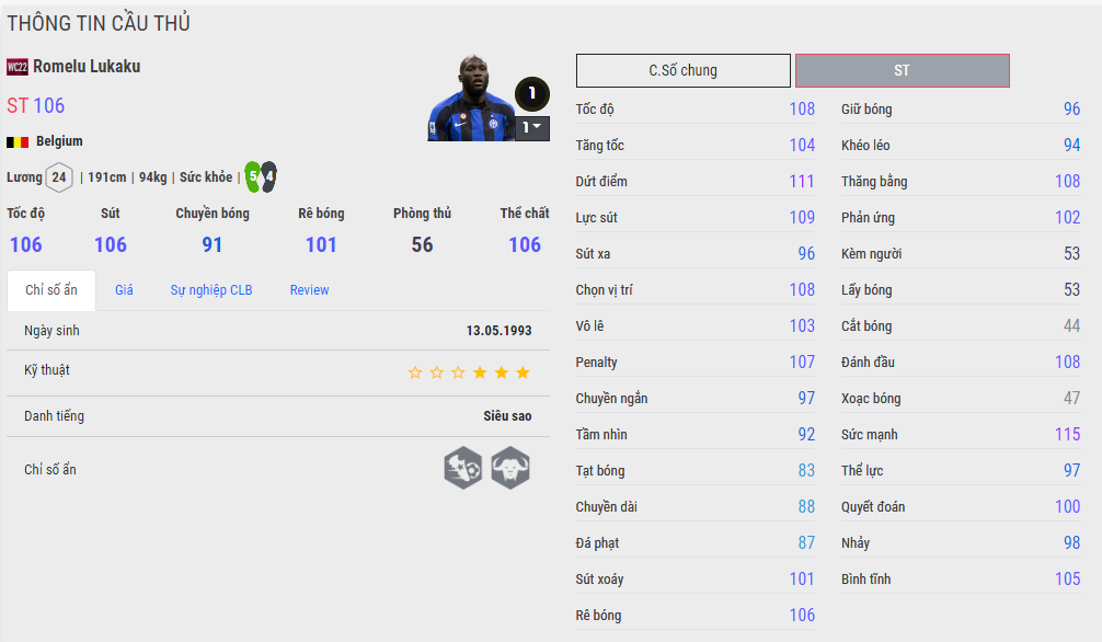 Như vậy có thể thấy, Lukaku chỉ xoay quanh 3 mùa ổn là BWC, WC22 và RTN. Trong đó có lẽ WC22 là cân bằng nhất cho mọi yếu tố, BWC thì kiến tạo tốt hơn, trong khi RTN thì chơi đầu tốt hơn.