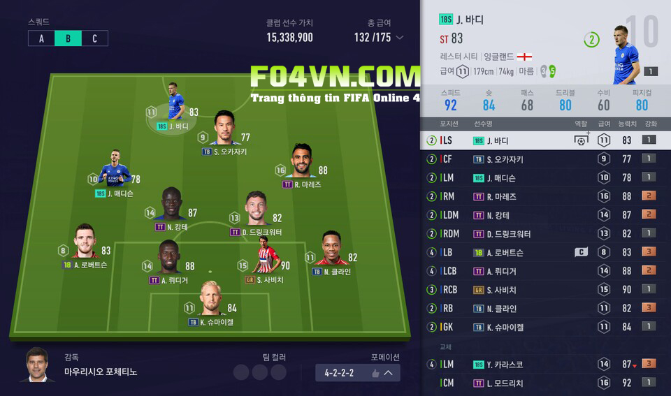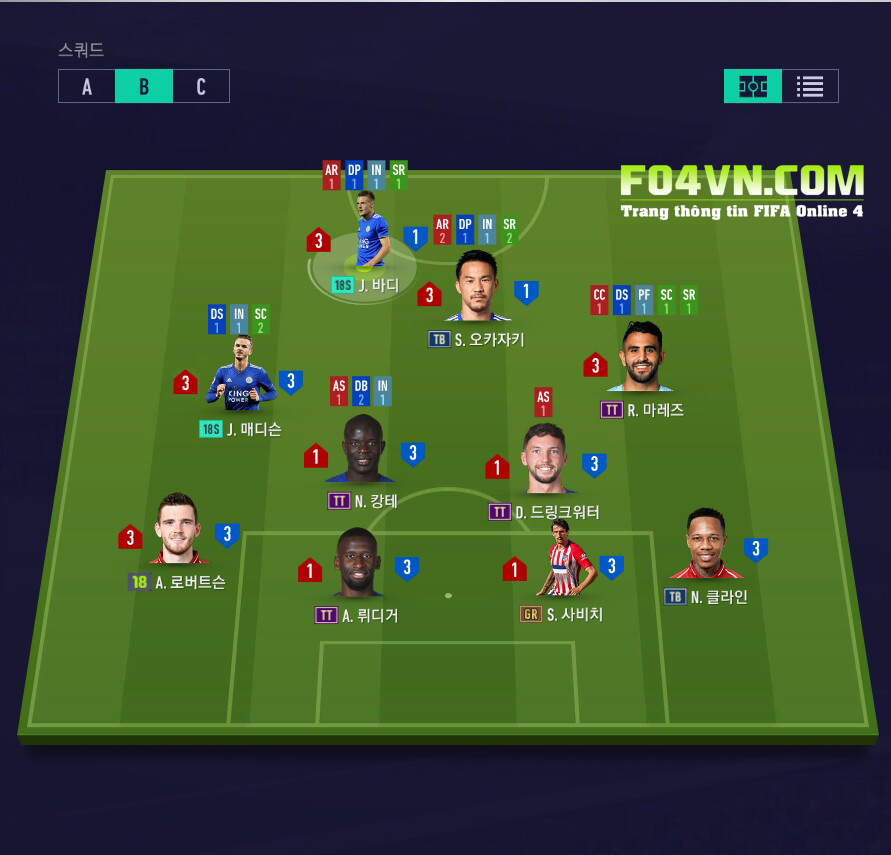 Sơ đồ chiến thuật cho các cầu thủ Leicester City