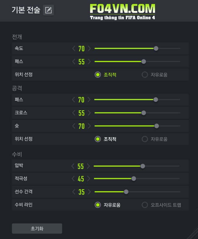 Mô phỏng trong game cần có đôi chút khác biệt, Với việc 2 cánh dâng cao thì vị trí phòng ngự CDM nên được kéo xuống thành CB hoặc SW để tăng cường chất phòng ngự khi 2 cánh đang miệt mài dâng cao.