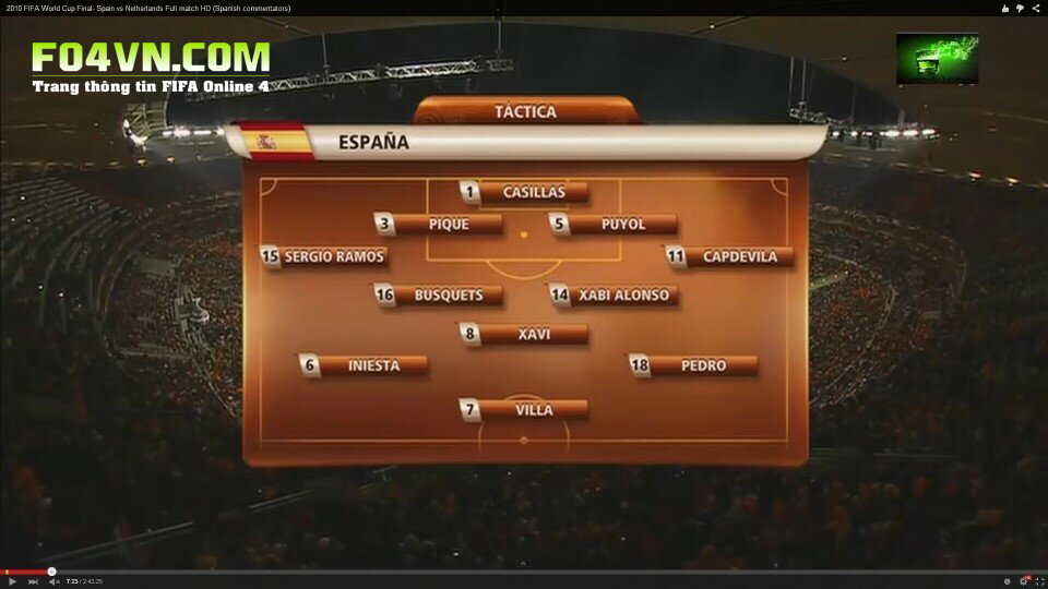 Bằng chứng là chức vô địch World Cup 2010 của các cầu thủ Tây Ban Nha. Vậy hôm nay hãy cùng FO4VN,COM mô phỏng chiến thuật đã đưa Tây Ban Nha lên chức vô địch ở bài viết dưới đây.