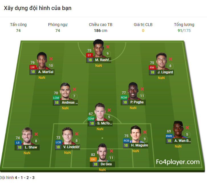 Đội hình ra quân chính thức của MU ở trận đấu này