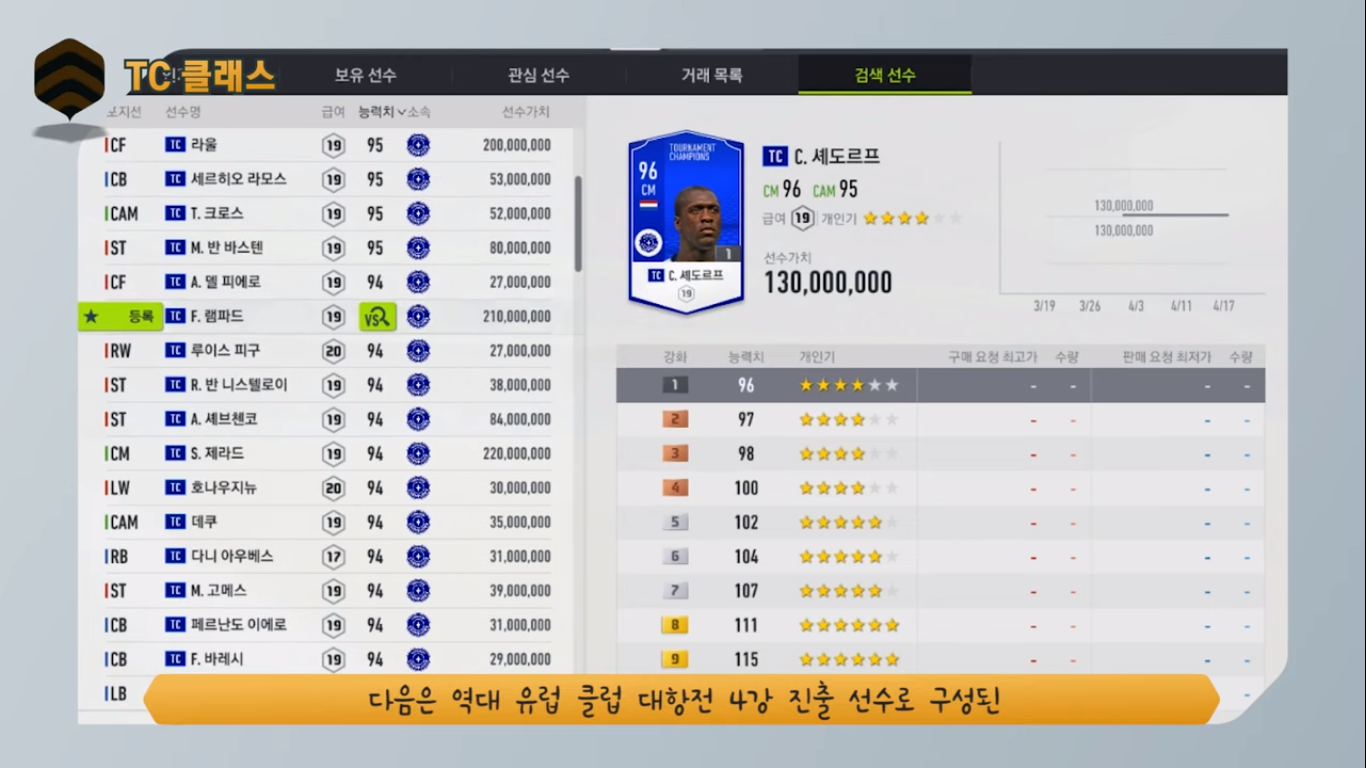 Không chỉ có vậy, điều được nhiều game thủ quan tâm lại nằm ở việc ra mắt thêm thẻ mùa giải Tournament Champions ở máy chủ FIFA Hàn Quốc. Mùa giải TC là mùa giải được coi là sự trở lại của những Huyền thoại khi có rất nhiều những Huyền thoại được tăng chỉ số cũng như được thêm mới vào trong FO4.